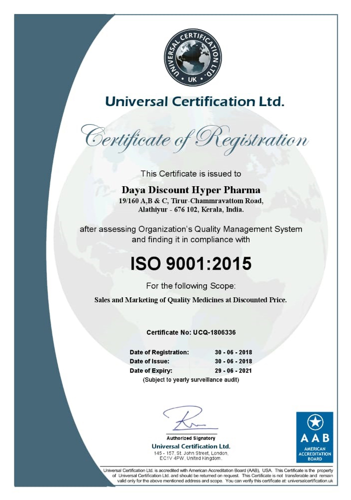 Discount Hyper PharmaDaya Discount Hyper Pharma was started in the year 2018 with the objective of providing a world class pharmacy at the lowest possible price and best quality